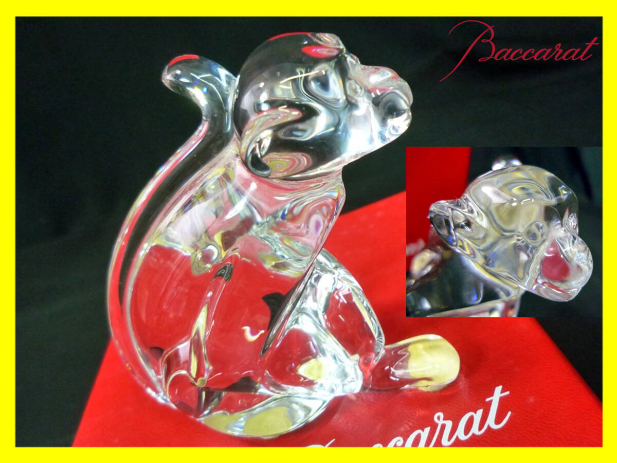 > Baccarat バカラ 十二支 干支 猿 さる サル 申 クリスタル ガラス オブジェ 置物 フィギュリン オーナメント 元箱 取説 美品 お買得 必見③
