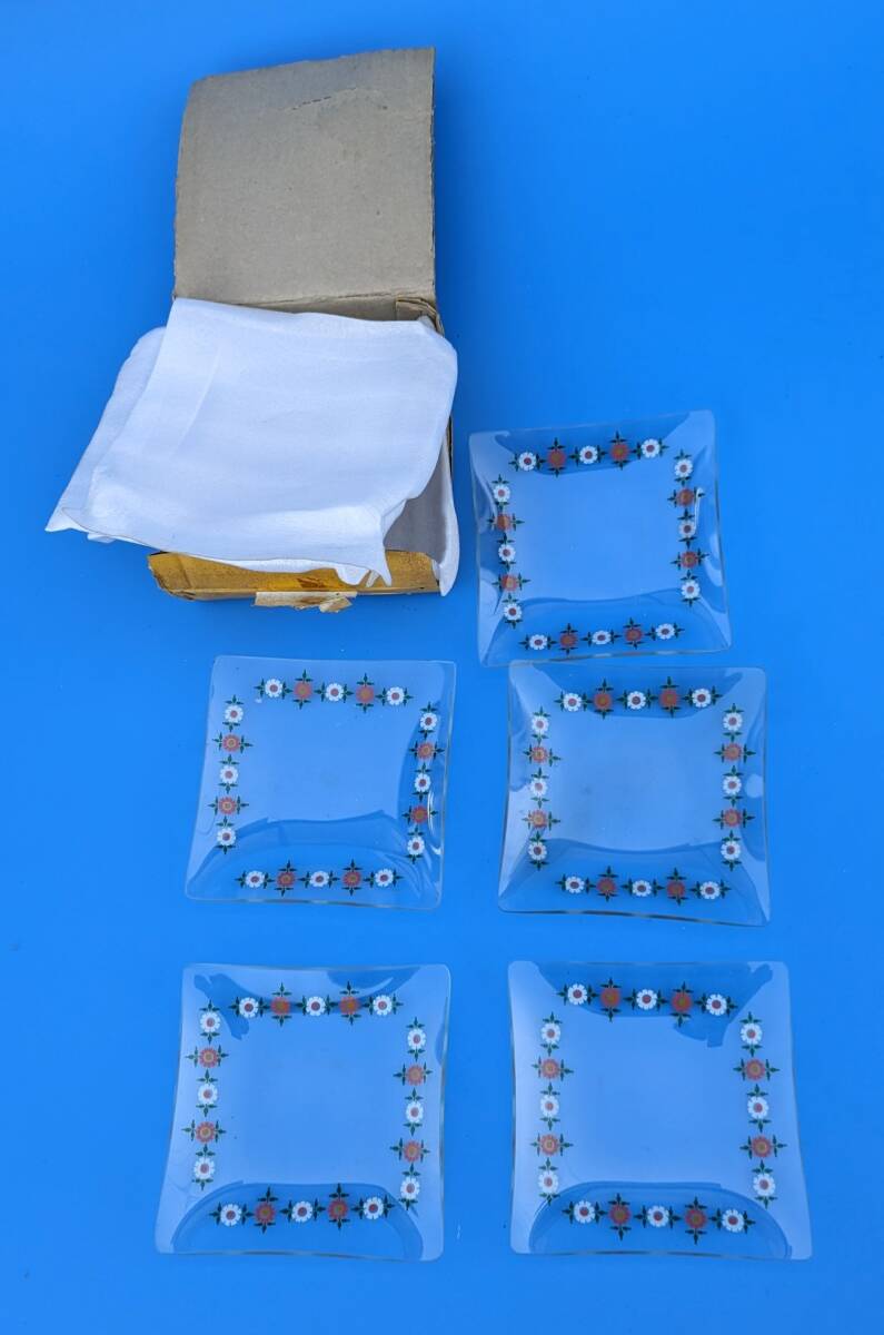 - 昭和レトロガラス皿角型マーガレット柄5枚送料詳細は商品説明に記載されています