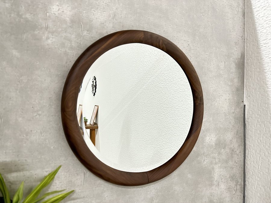 - ミラー 丸 鏡 幅40cm 立て掛け おしゃれ 北欧 円形 完成品 スーク ウォールナット無垢 アウトレット/未使用 60510 送料無料