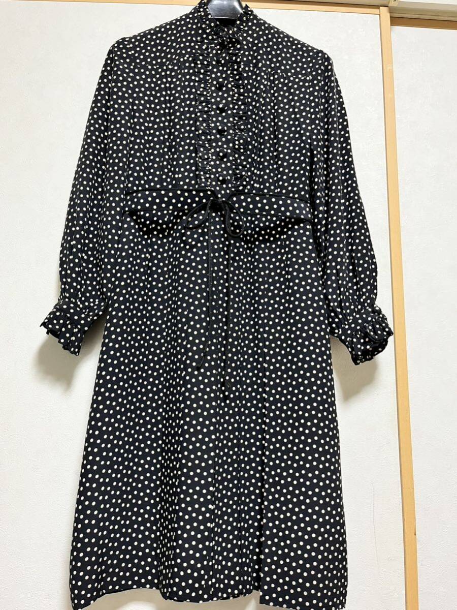 - 古着/ユーズド/レトロ*オーダーメイド*シルク*黒地水玉