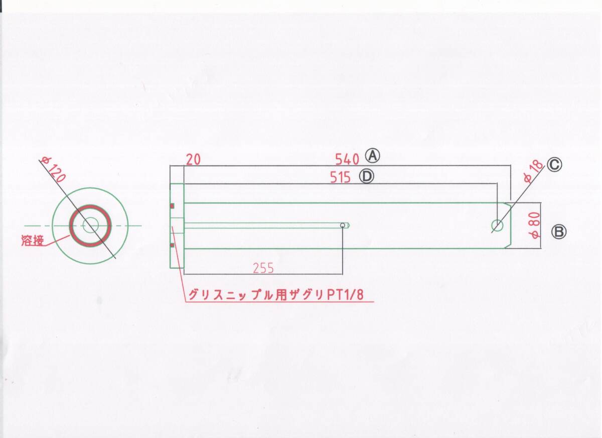 - N0.1785 Φ80用 溶接ツバ下540mm ニップル穴付きバケットピン 1本