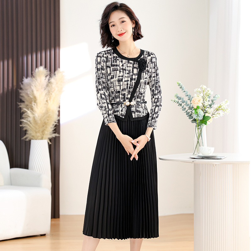 - 大人気 レディーストップス 長袖プリーツロング丈ワンピース肌触り弾力通気性ドレープ性いい素敵大人可愛いブラック