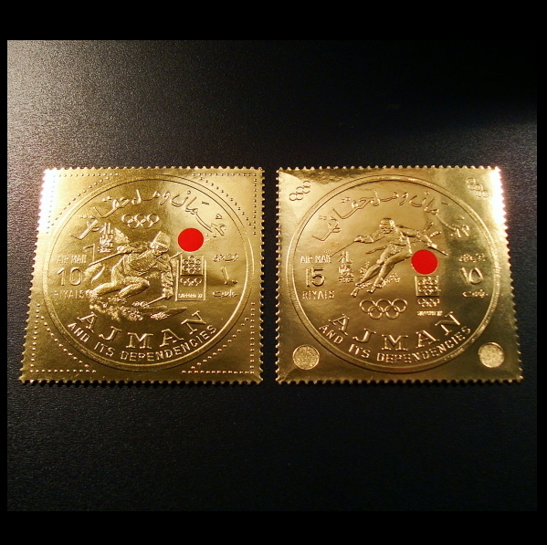 - ■アジュマーン(アラブ首長国)切手 1972年 札幌五輪 / オリンピック 金箔切手2種