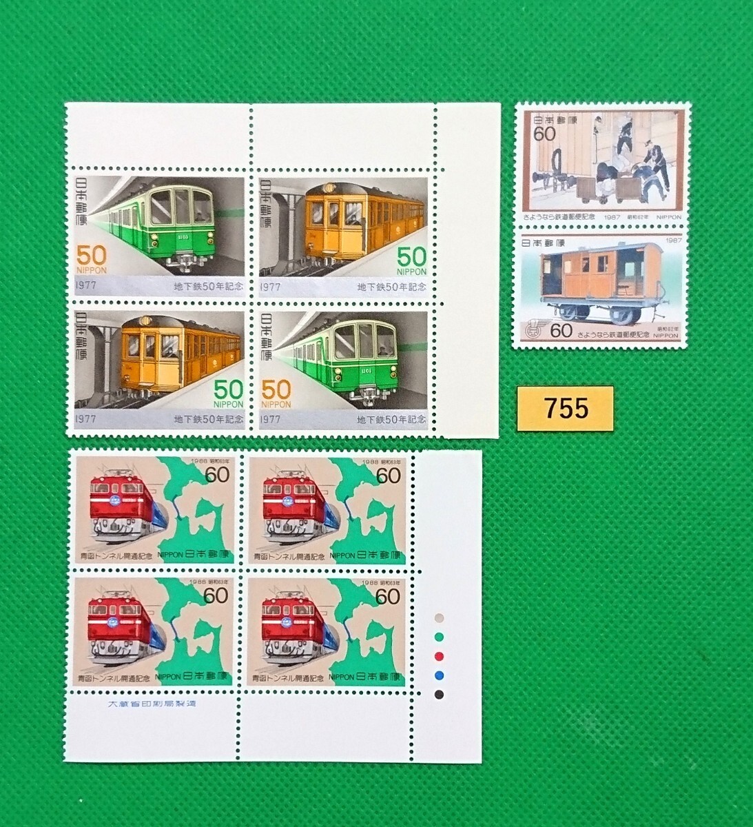 - 鉄道切手/地下鉄50年/青函トンネル開通/さよなら鉄道郵便/ボストーク収納用に/コレクションに/NH/美品/シミ無/シワ無/糊艶良好/№755