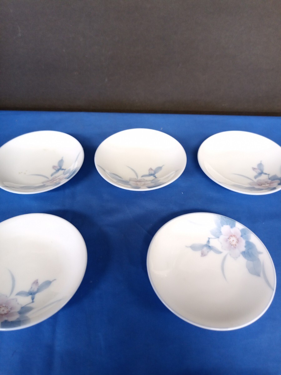 - 昭和レトロ■萩窯 花柄 小皿 五枚セット 醤油皿 豆皿