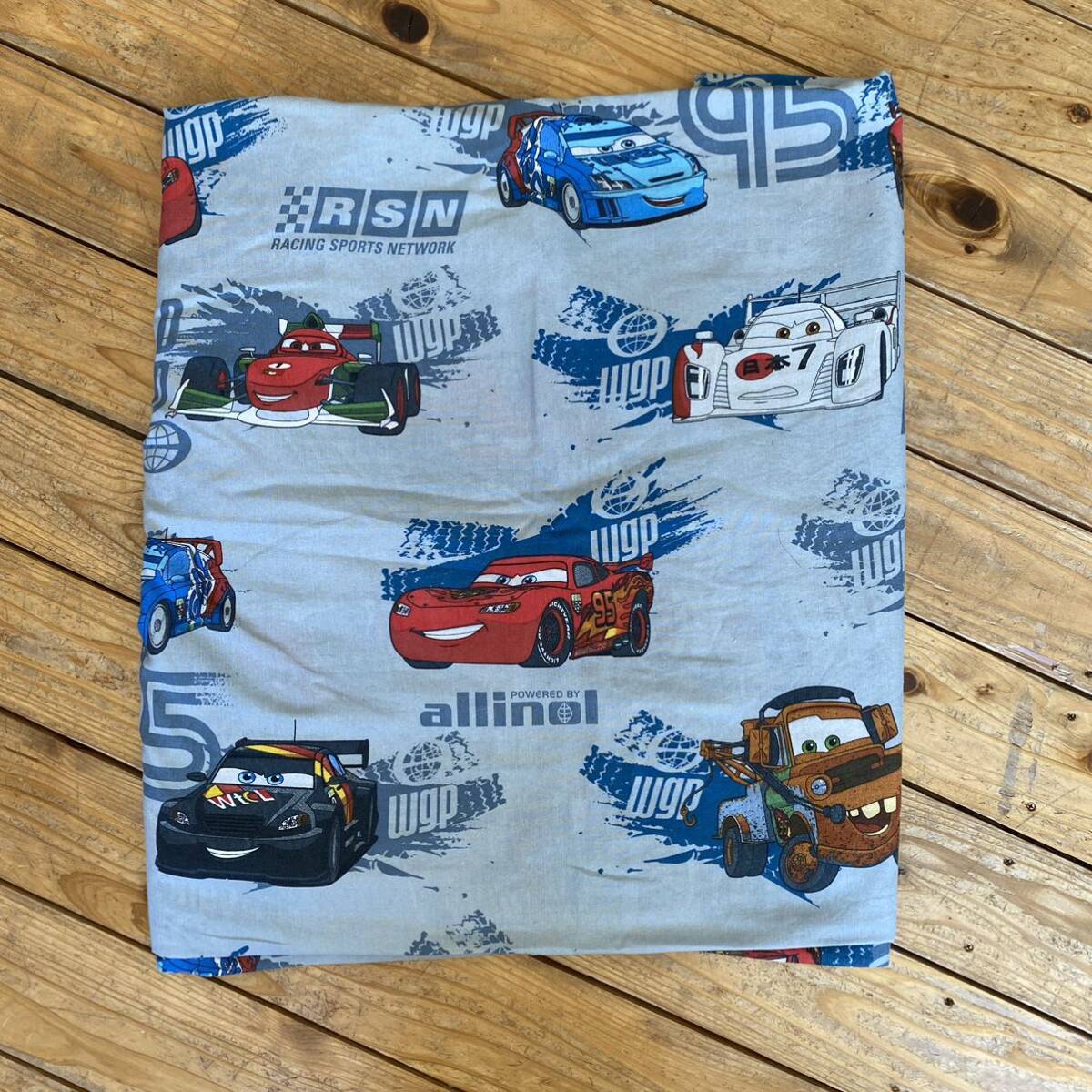 - USAヴィンテージ ベッドシーツ CARS カーズ リメイク生地 素材 フラットシーツ アメリカ仕入 WGP レーシング racing 車 総柄 B2145