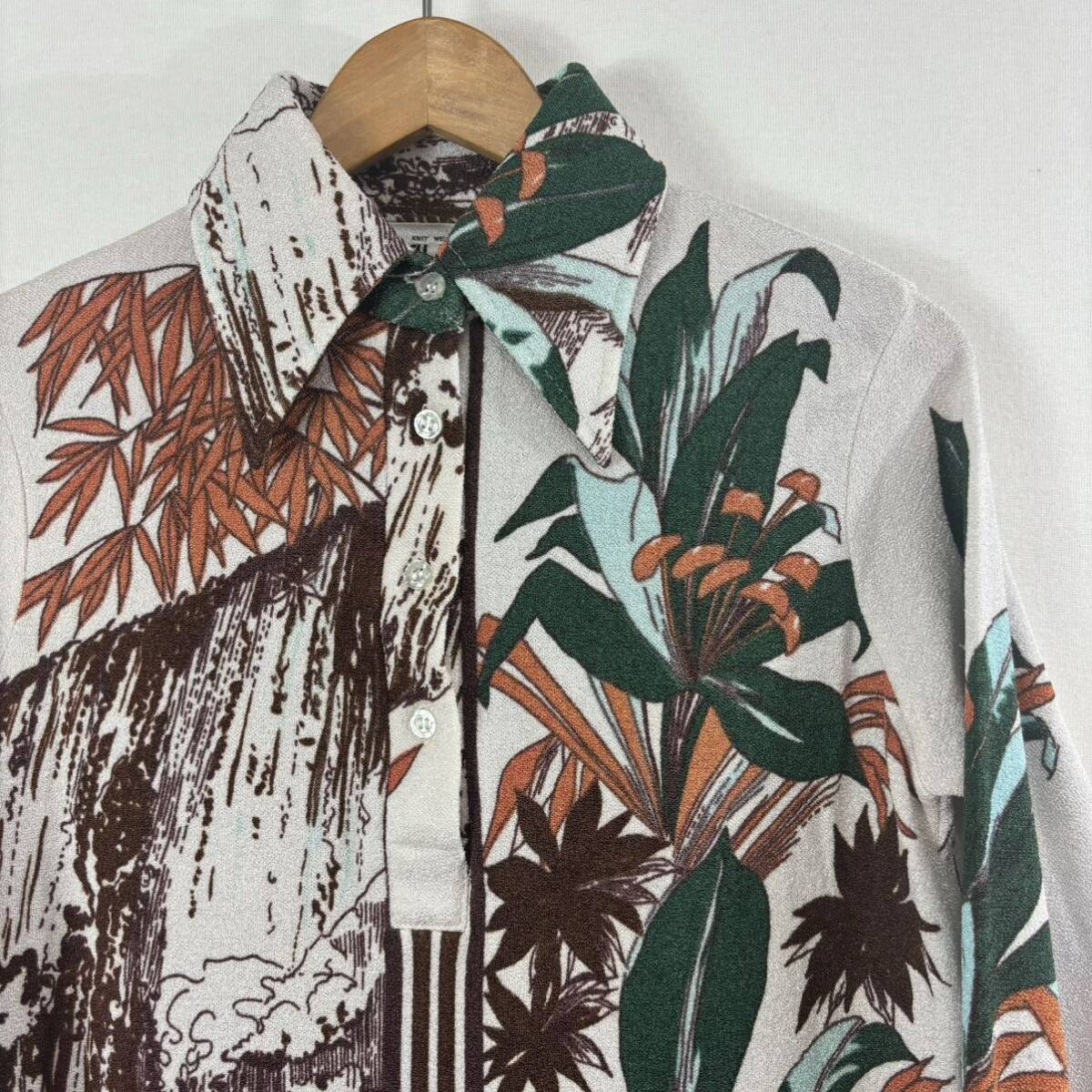 - ヴィンテージ 70s【レトロ】デカ襟 長袖 ポロ ワンピース シャツ 古着 ビーチシャツ ボタニカル パイル 総柄 昭和 モダン ジャンテーク Y2K
