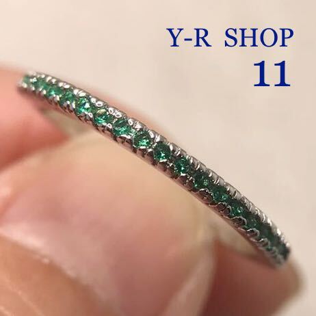 - 11号★小粒エメラルド のエレガントリング★レディース指輪シルバーアクセサリーカラーストーンキュービックジルコニア 新品宝石Y-R SHOP
