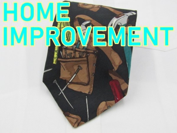- 【工具】 OC 692 ホームインプルーブメント HOME IMPROVEMENT ネクタイ 黒系 茶系 工具柄 プリント