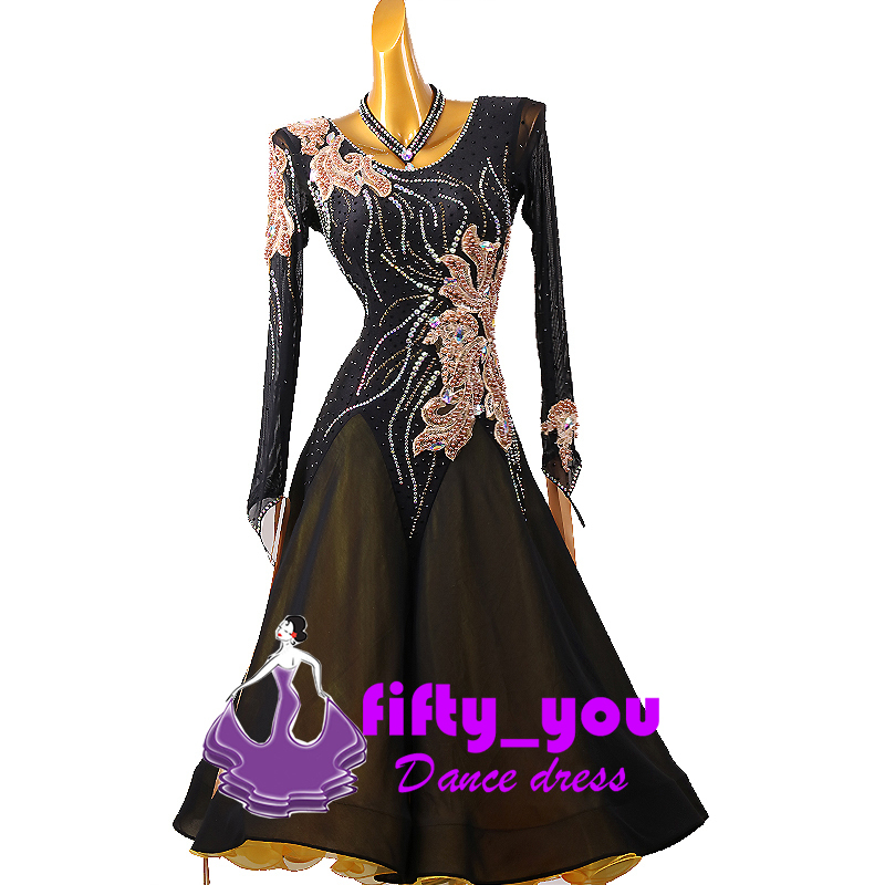 - 新品fifty_you レディース社交ダンス衣装 魅力セミオーダー 競技デモ用モダンドレス ライトストーン飾 ハイクオリティダンスドレス 黒色