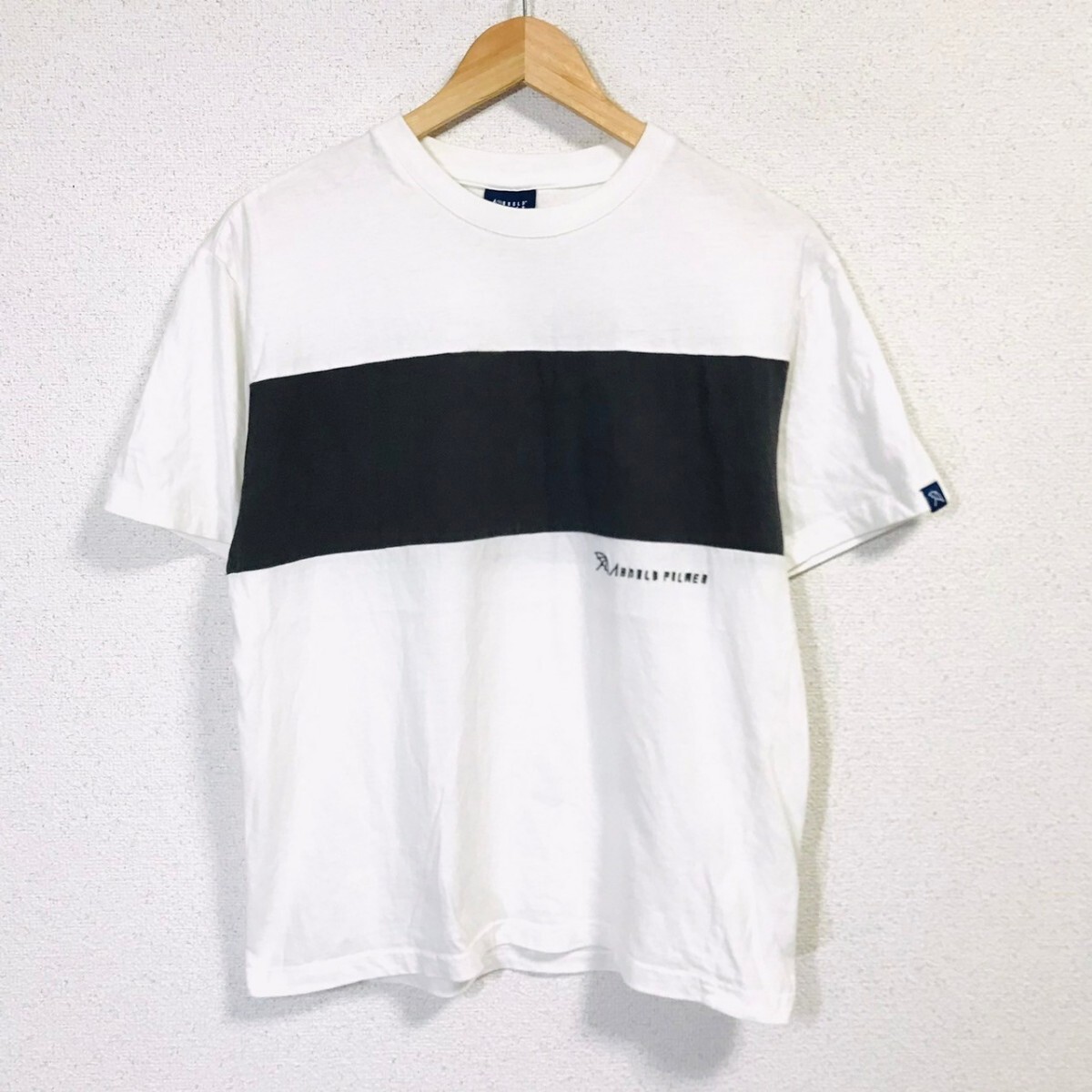 - H8468dL Arnold Palmer アーノルドパーマー サイズM 半袖Tシャツ クルーネック ホワイト×グレー メンズ 綿100% ロゴ刺繍 カジュアル