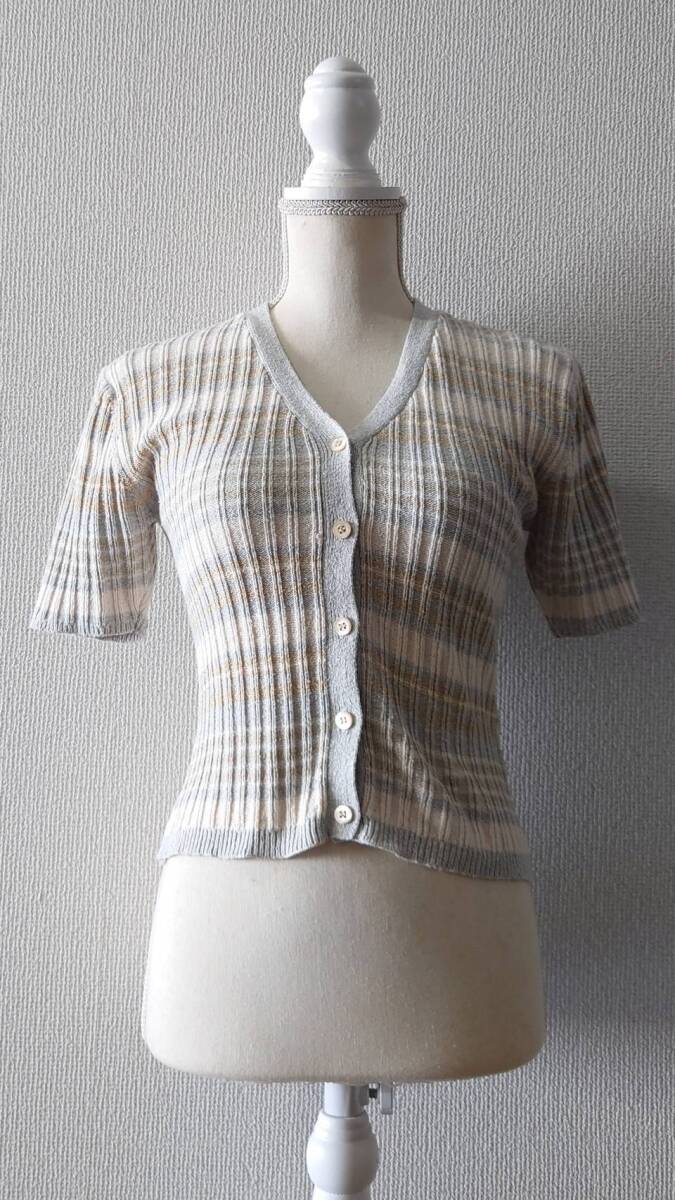 - 90-00’s J.CREW シルク×コットン 半袖 ニット カーディガン S ボーダー柄 1990-2000年代