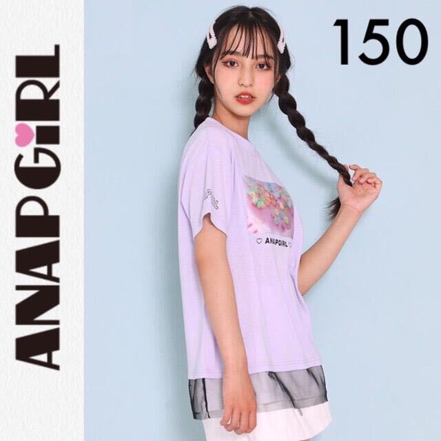 > 新品タグ付き☆ANAP GiRL 裾チュールロング丈Tシャツ 150 パープル アナップガール