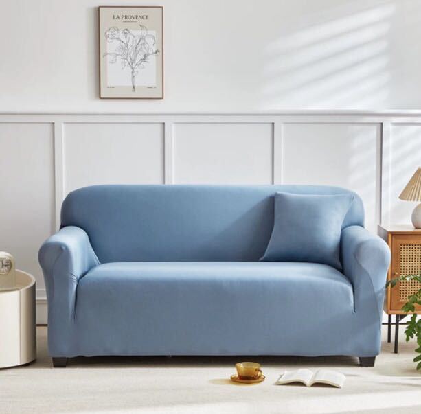 - ソファカバー 2人掛け 無地 ブルー系 ソファー 伸縮素材 滑り止め ストレッチ 防塵対策 伸びる