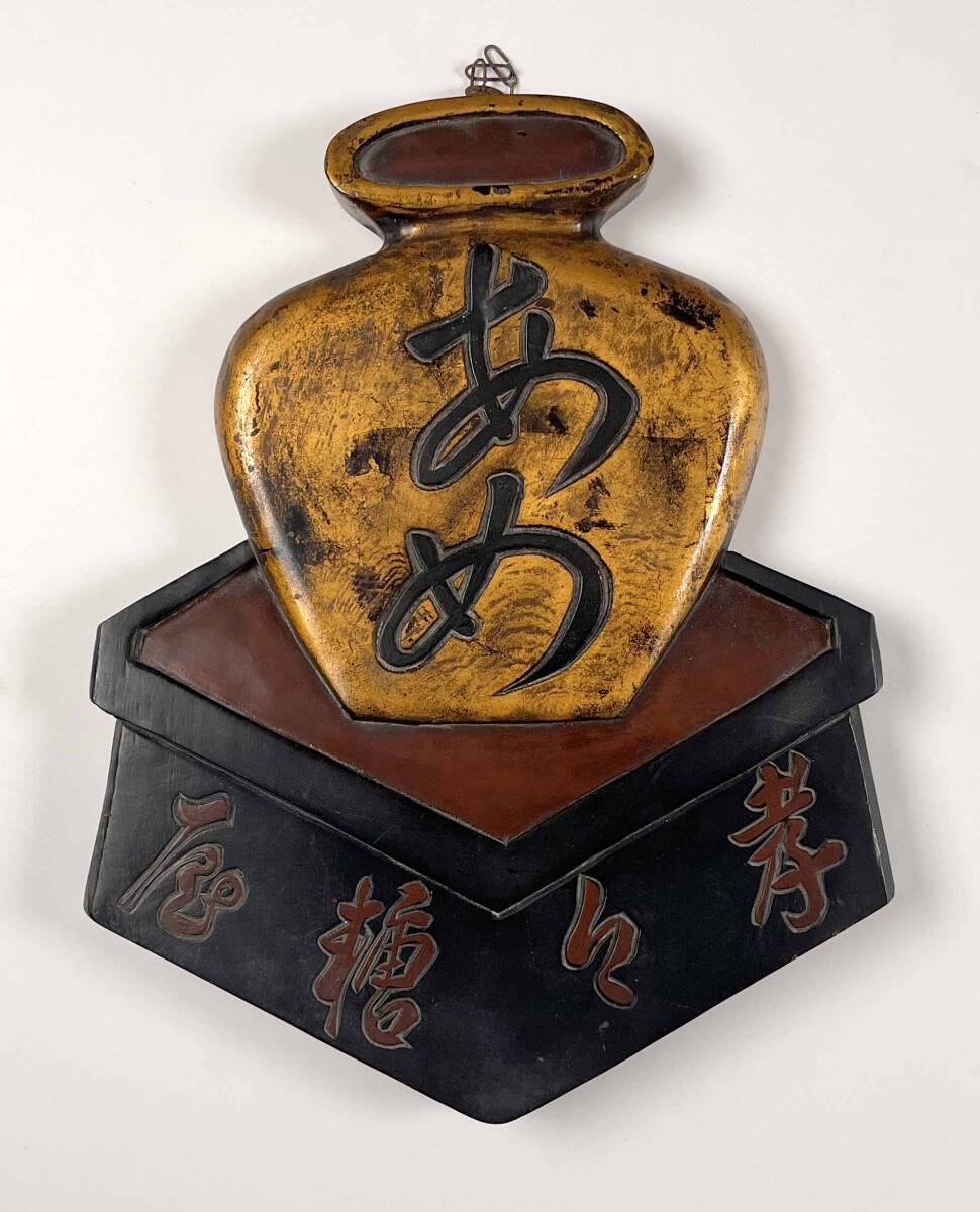 - 60519Y●木製看板●あめ 孝々糖屋 吊下看板 飴屋●アンティーク レトロ