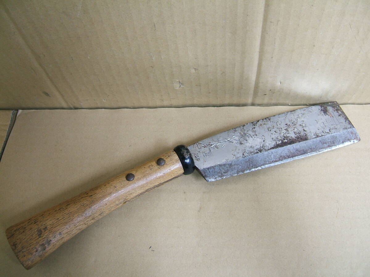 - 中古 義兼 作 鋼付 片刃 刃渡り165mm 全長約365mm 古民具 腰ナタ 鉈 ナタ 245