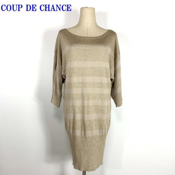 - クード シャンス ボーダー長袖ラメニットワンピースベージュCOUP DE CHANCE カジュアル ゴールドラメ リブニット 38 C28