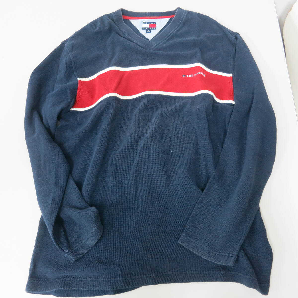 - トミー ヒルフィガー Tommy Hilfiger 長袖Vネックシャツ ネイビー サイズM
