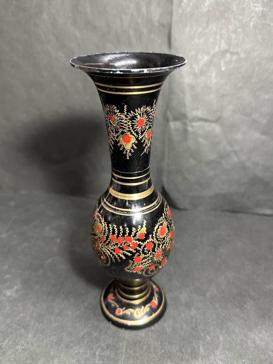 - ★コレクター必見!! ビンテージ 金彩 柄 金属製 花瓶 一輪挿し 黒 金色 インテリア お洒落 雑貨 花器 飾り ディスプレイ 小物 レトロ K73
