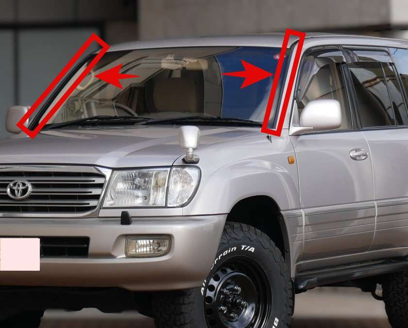 - 新品 トヨタ ランクル 100 フロント ウインド ガラス モール 左右 ウインドウ シールド アウト サイド モールディング 窓枠 ゴム 水切り