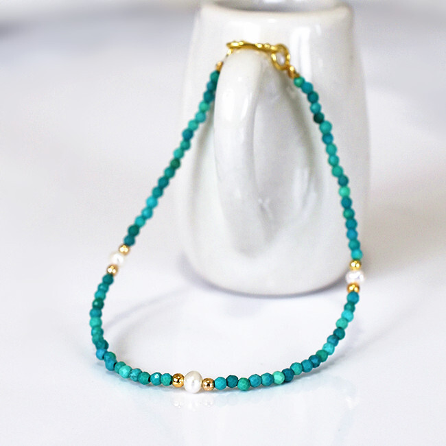 - 12月誕生石 極細 ターコイズ トルコ石 淡水パール 真珠ビーズ ブレスレット