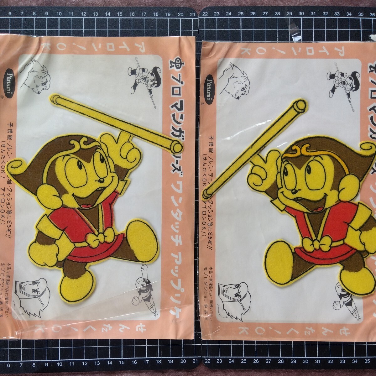 - 昭和レトロ 悟空の大冒険 特大アップリ 17.5cm 虫プロ マンガシリーズワンタッチアップリケ アイロン パナミ手芸 当時物 左右セット ペア