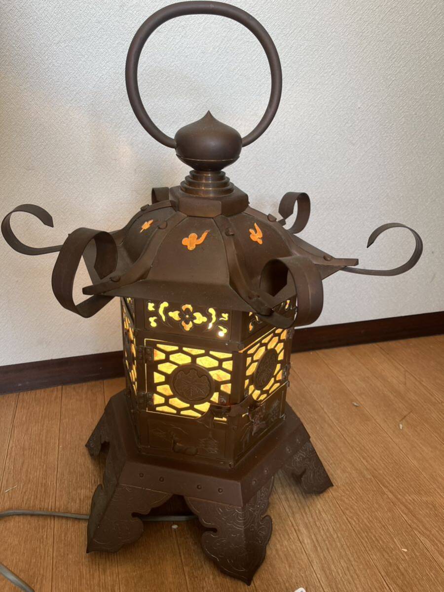 > 時代 仏教美術 銅 重さ8.5kg 鹿図 家紋 透かし 寺院 レトロ ランプ インテリア 照明器具 照明 吊り灯籠 灯籠 吊りランプ