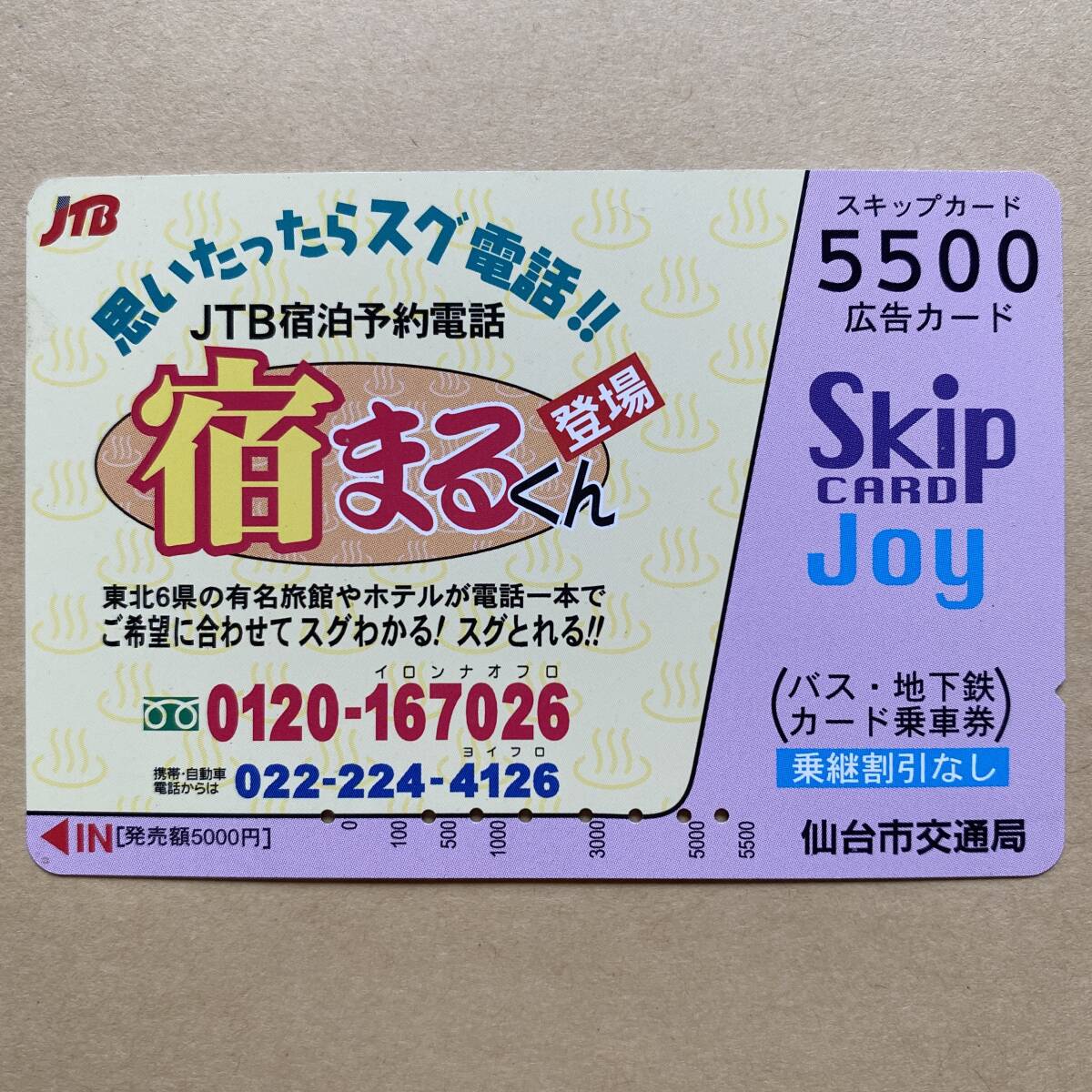 - 【使用済】 スキップカード 仙台市交通局 JTB宿泊予約電話 宿まるくん
