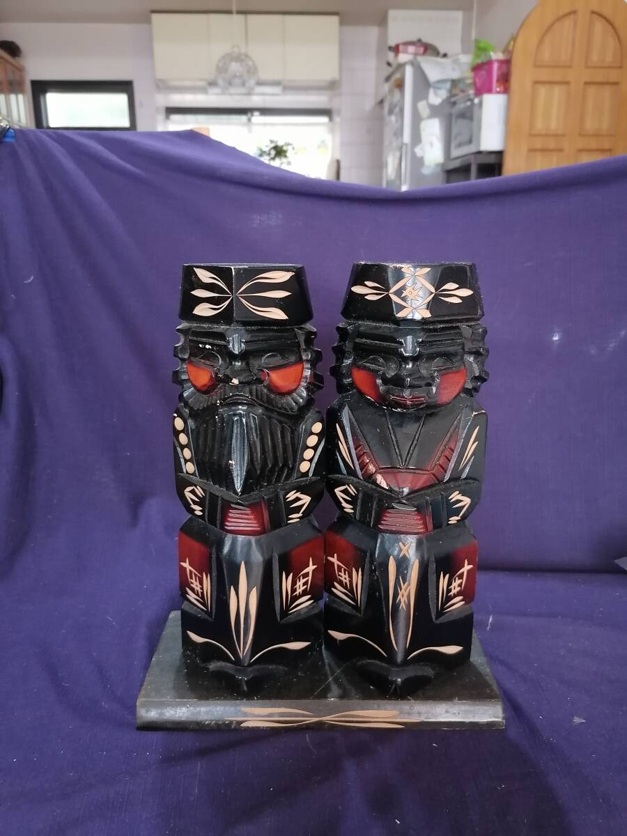 - 古い 木製 アイヌ人形 木彫り 一対 夫婦 北海道 二ポポ こけし 郷土玩具 民芸品 お土産品 置物 飾り物 レトロ 年代物 上質