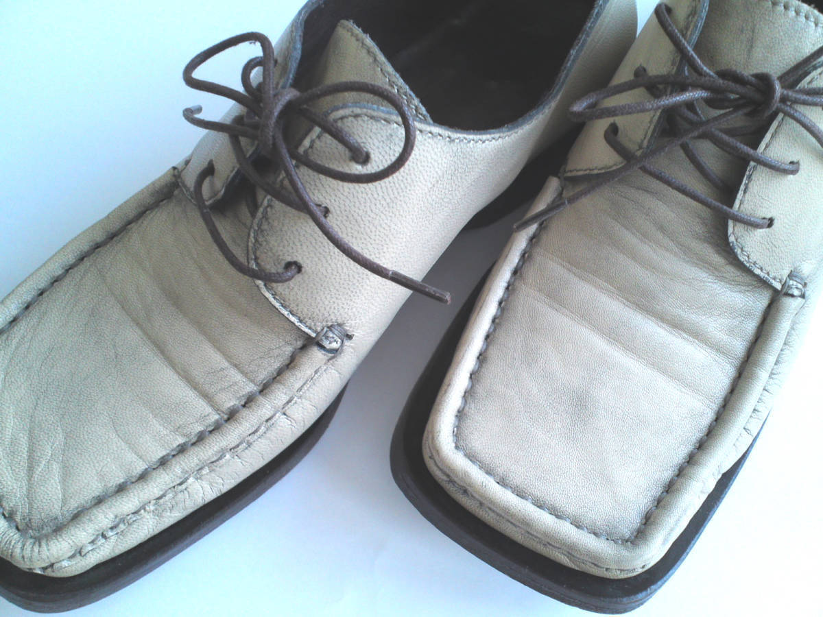 > 美品★23cm 春シューズ★スクエアトゥPATRICKCOXパトリックコックス白グレー焦げ茶皮靴紐靴レースアップシューズホワイトこげ茶レディース