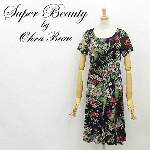 - 美品◆Super Beauty スーパービューティ 花柄 ビジュー装飾 パワーネット フレア ワンピース 40