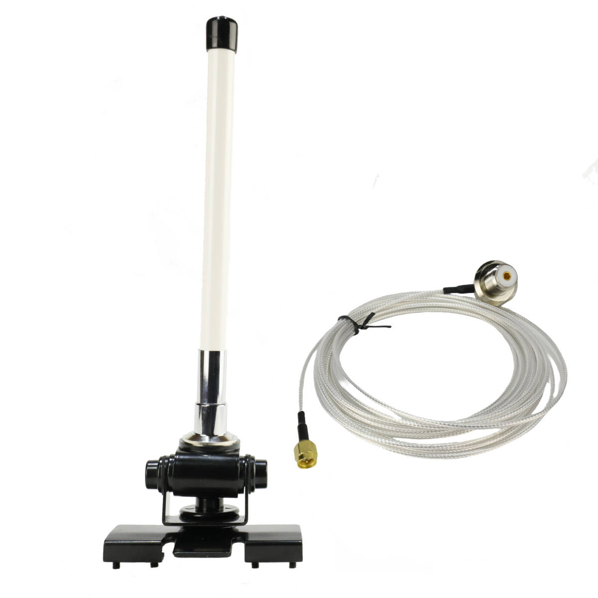 - 144/430MHz帯 22㎝ デュアルバンドアンテナ(白) ハッチバック/トランク基台(黒) SC316(1.5D-2V相当)MJL-SMA接栓付 同軸ケーブル5m