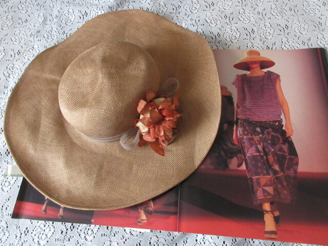 > ■日本製■【SALON DE UCHIDA サロン デュ ウチダ】■高級帽子ラフィア系■取り外し可/お花モチーフ付き特大サマーハット■カネコイサオ風