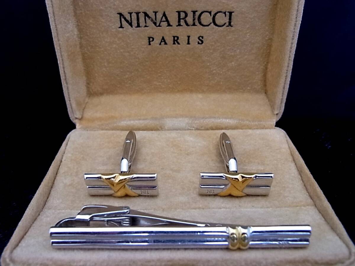 - ■美品■№0725 ニナリッチ【NINA RICCI】【シルバー・ゴールド】■カフス&ネクタイピン セット♪