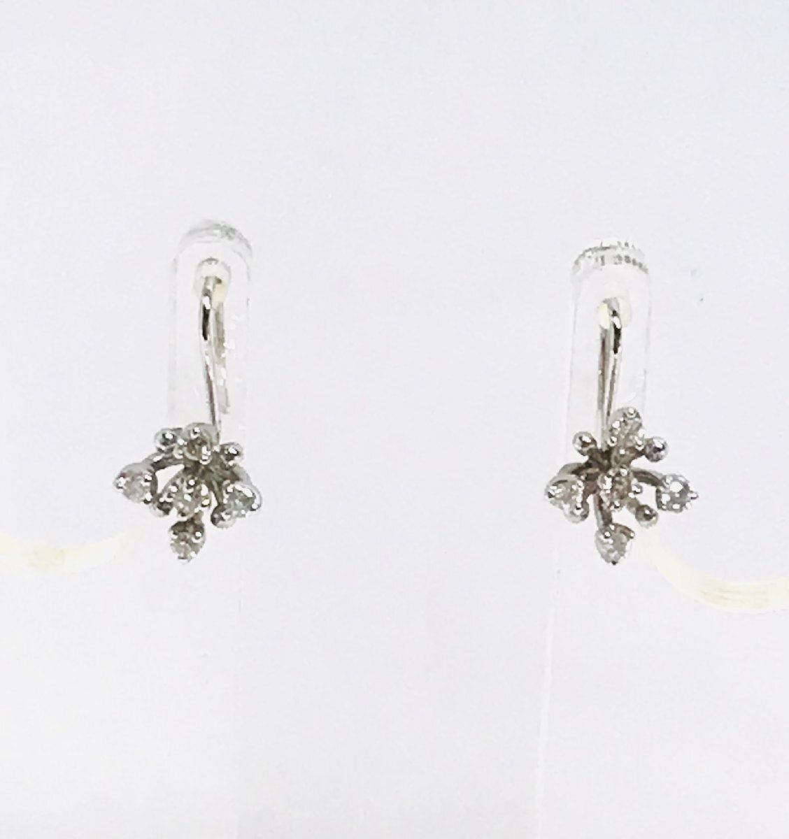 - K18WG 4℃ ホワイトゴールド メレダイヤ 花モチーフ フックピアス qoj.YPV18