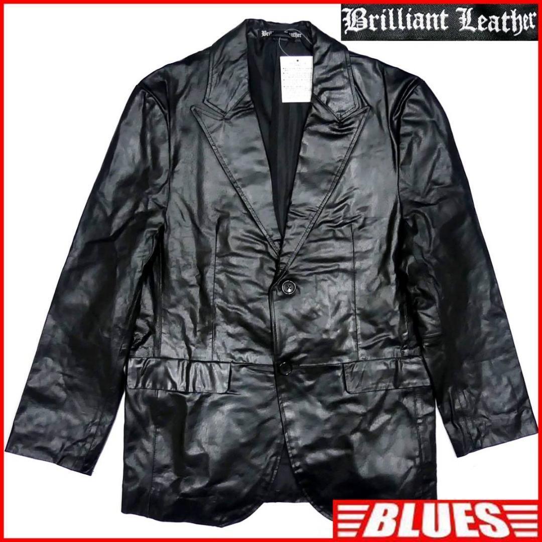 > 即決★Brilliant Leather★メンズM レザーテーラードジャケット ブリリアントレザー 黒 本革 スーツ 本皮 ビジネス 革ジャン 背広 ブレザー