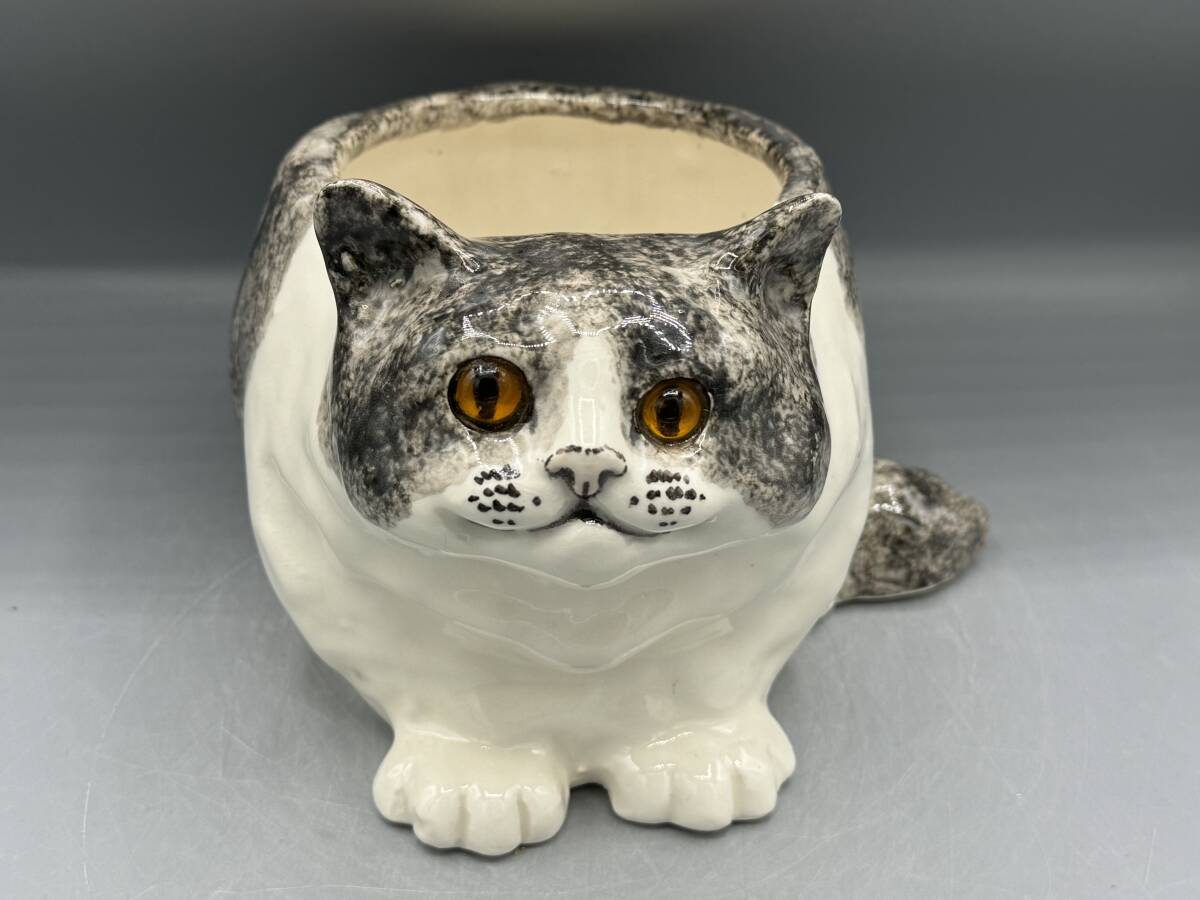 > 新品 目が合う ケンジントンキャット サイズ4 グレー白 猫 鉢 フラワーポット 鉢カバー 置物 ネコ