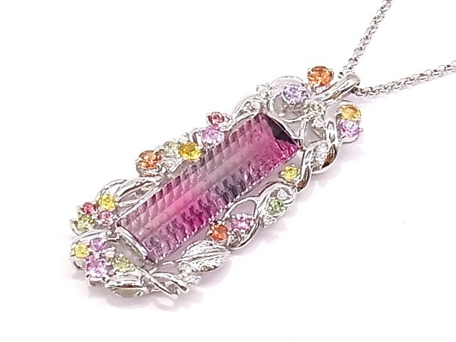 - g17918 K18WG ピンクトルマリン11.26ct D0.18ct ネックレス USED 美品 19.7g 50cm アジャスター付新品チェーン 鑑別書付