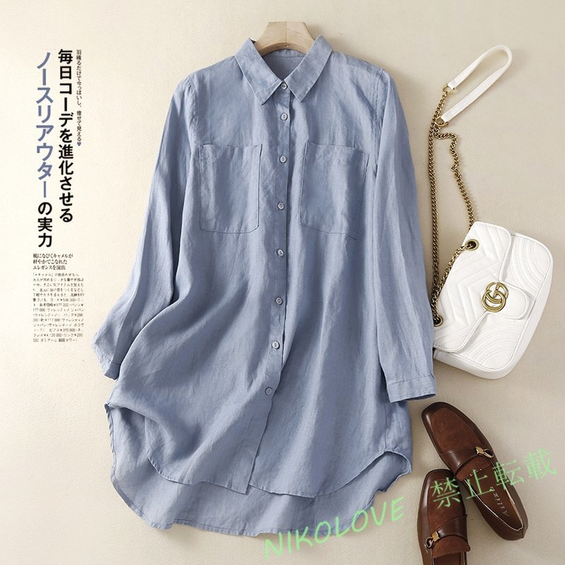 - 新品夏 シャツ レディース 長袖 綿麻 シャツ ロング シャツワンピース レディースゆったり 大きいサイズ ブラウス 3色選択可 LC651
