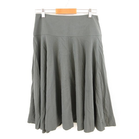 > ユニクロ UNIQLO スカート 膝丈 フレア カーキ 緑 4 *T607 レディース
