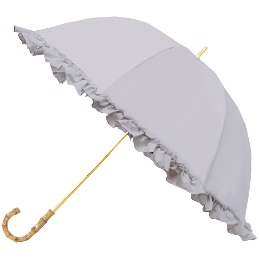> まるいシルエット 完全遮光 深張り 長傘 晴雨兼用 フリル ライラックグレー 親骨55cm 広げたサイズ直径85cm ややゆったり大きめ