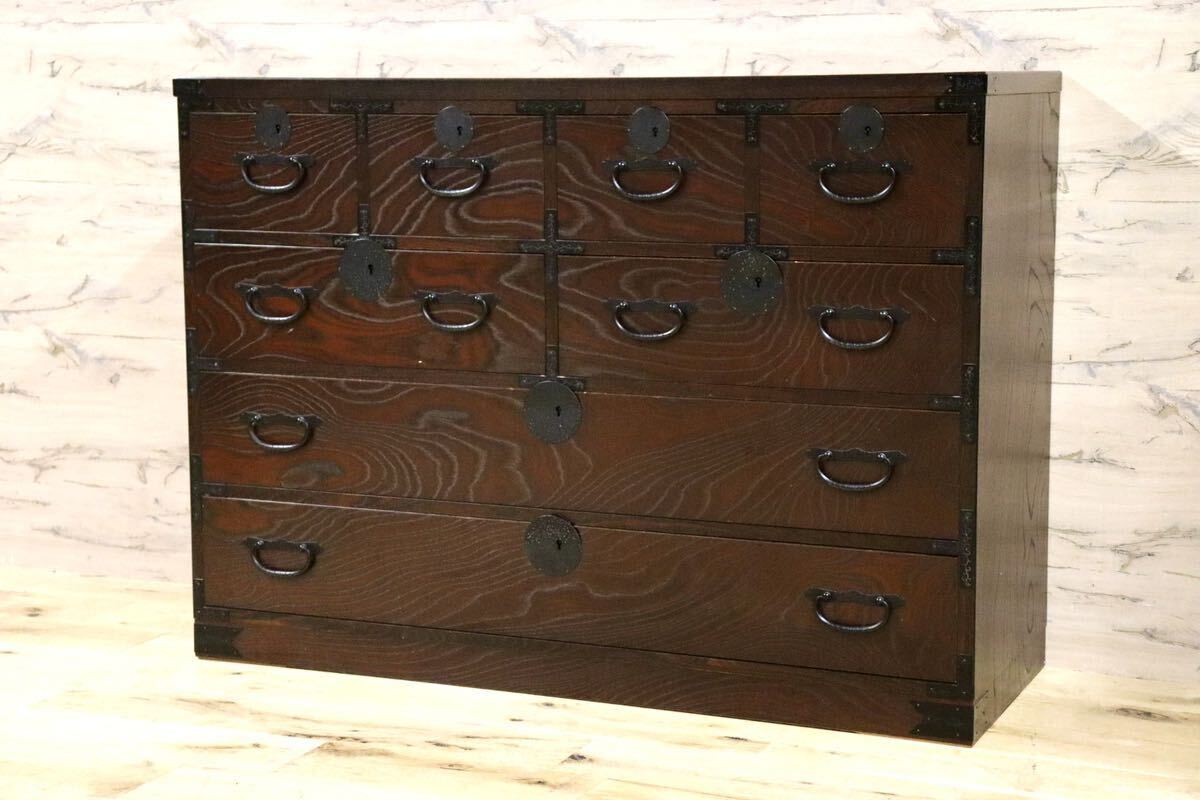 - GMHS158A○青木産業 江戸 整理箪笥 時代箪笥 チェスト 整理タンス 和家具 収納家具 欅 民芸家具 古民家 和モダン