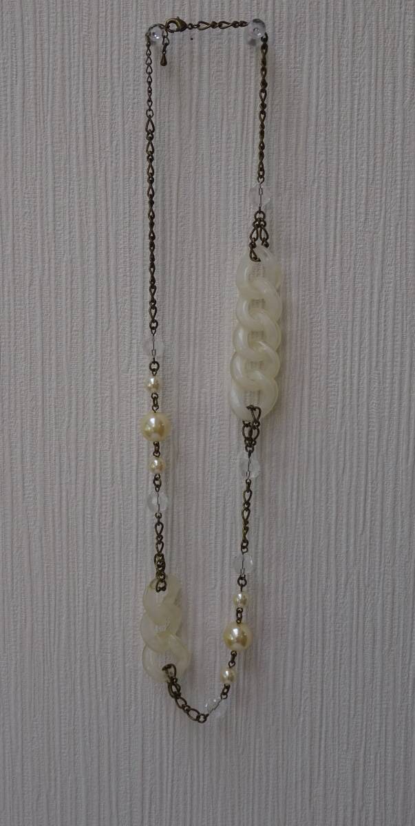 - ロングネックレス 夏向け 涼しげ オフホワイト ベージュ クリア素材