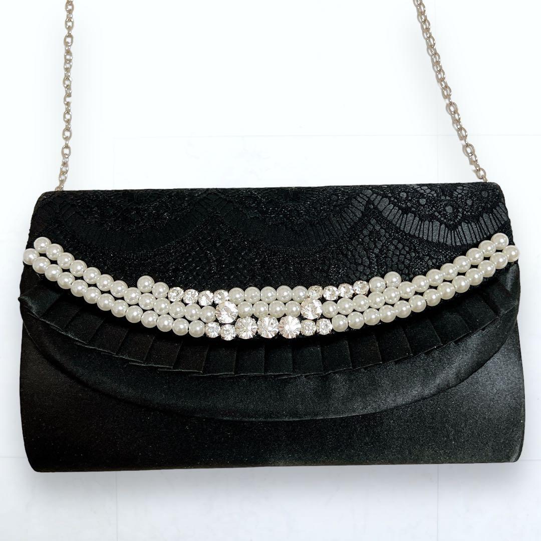 - Rew de Rew ルーデルー パーティーバッグ ショルダーバッグ フリル レース パール クリスタル 黒 ブラック