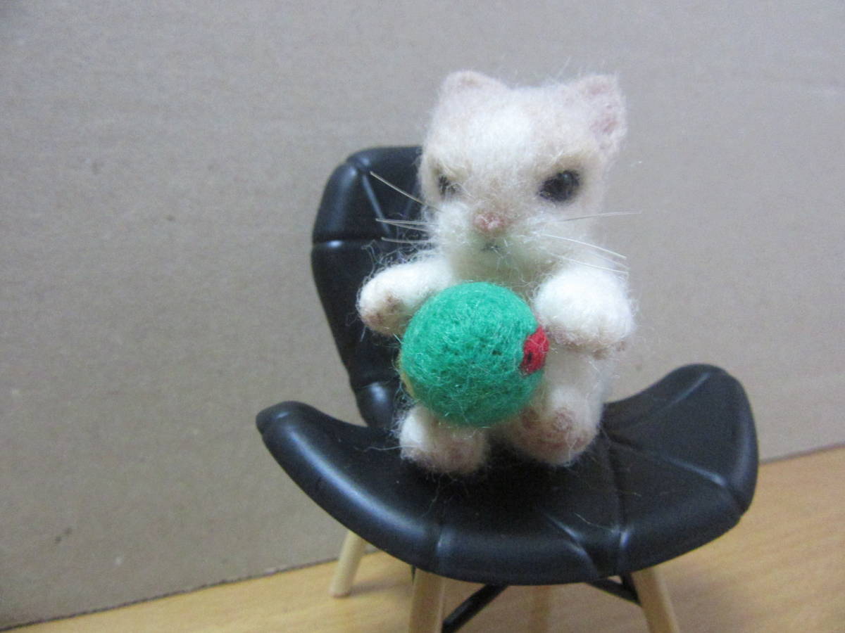 - ★ちょこっと猫 ぽちゃっと猫 白茶の猫とボール 羊毛フエルト ハンドメイド★