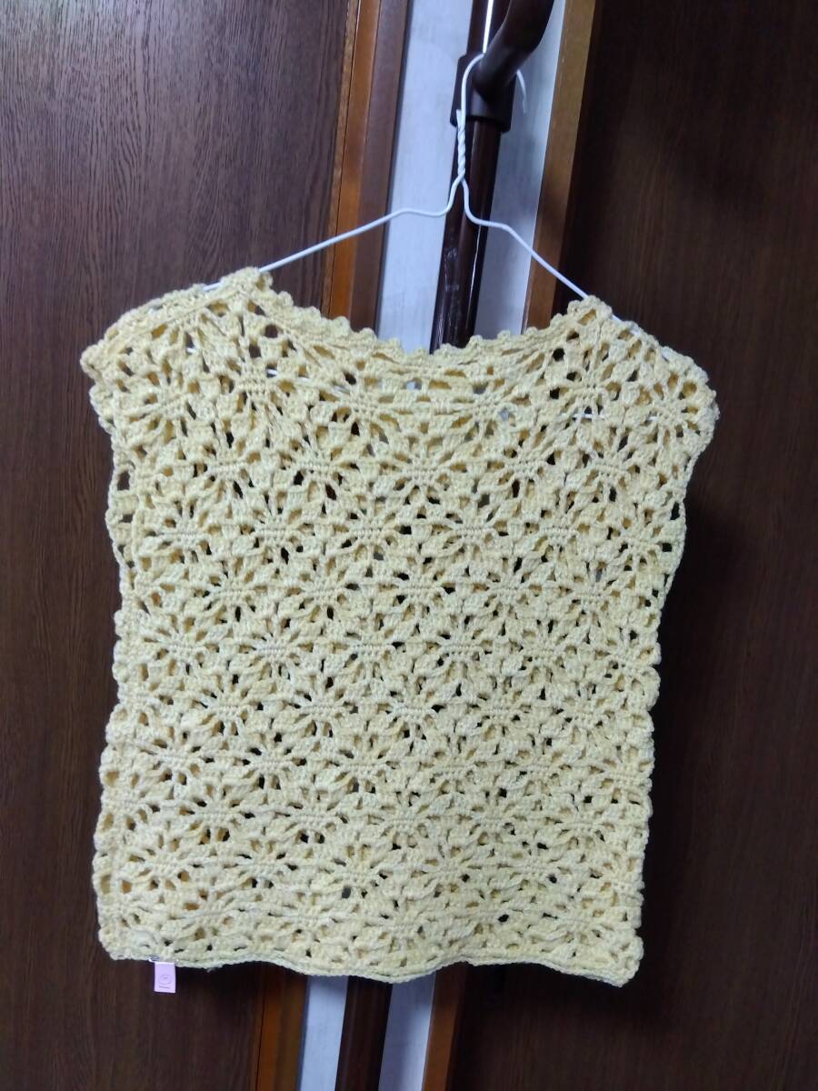 - ハンドメイド ニットベスト 黄色 着丈47cm 身幅42cm Mサイズくらい 未使用品