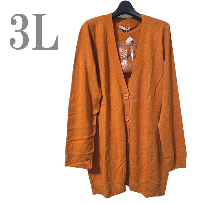 - ●新品/Vネック/カーディガン/3L/リボンベルト付き/レディース/オレンジ系●f10243