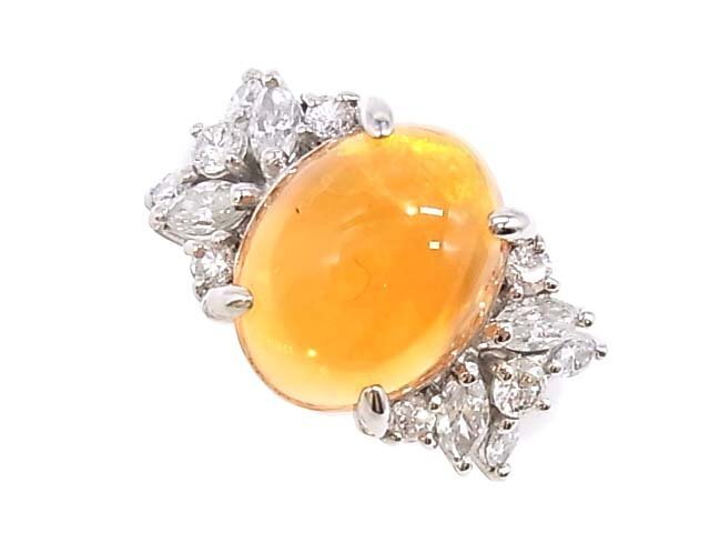 > g16612 Pt900 ファイアオパール4.925ct D0.84ct リング USED 美品 11.6g #12 ソーティング付