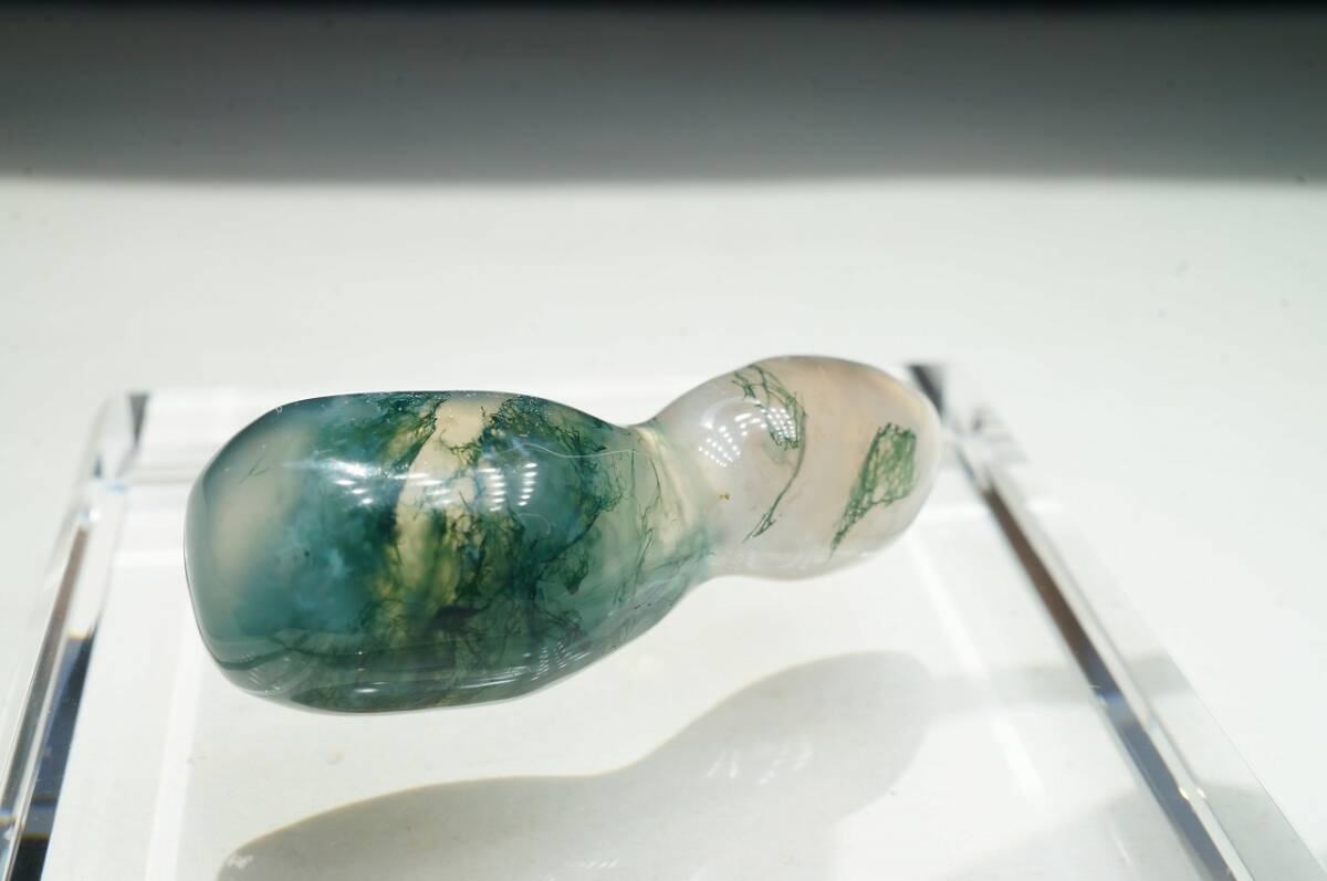 > 希少30年前の未使用在庫!上質モスアゲート瑪瑙・めのう・メノウ彫刻カービング「瓢箪」ルース色合い模様や彫が美しい24.2ct