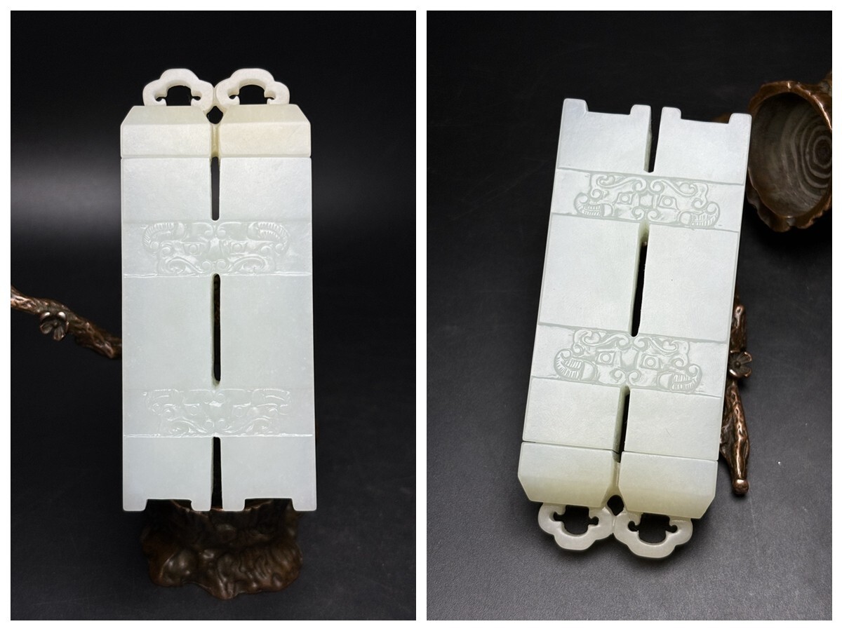 - 館蔵珍品時代物 和田玉 子料彫 双琮玉瓶【仁】極細工 手彫り 置物擺件 古賞物 蔵出